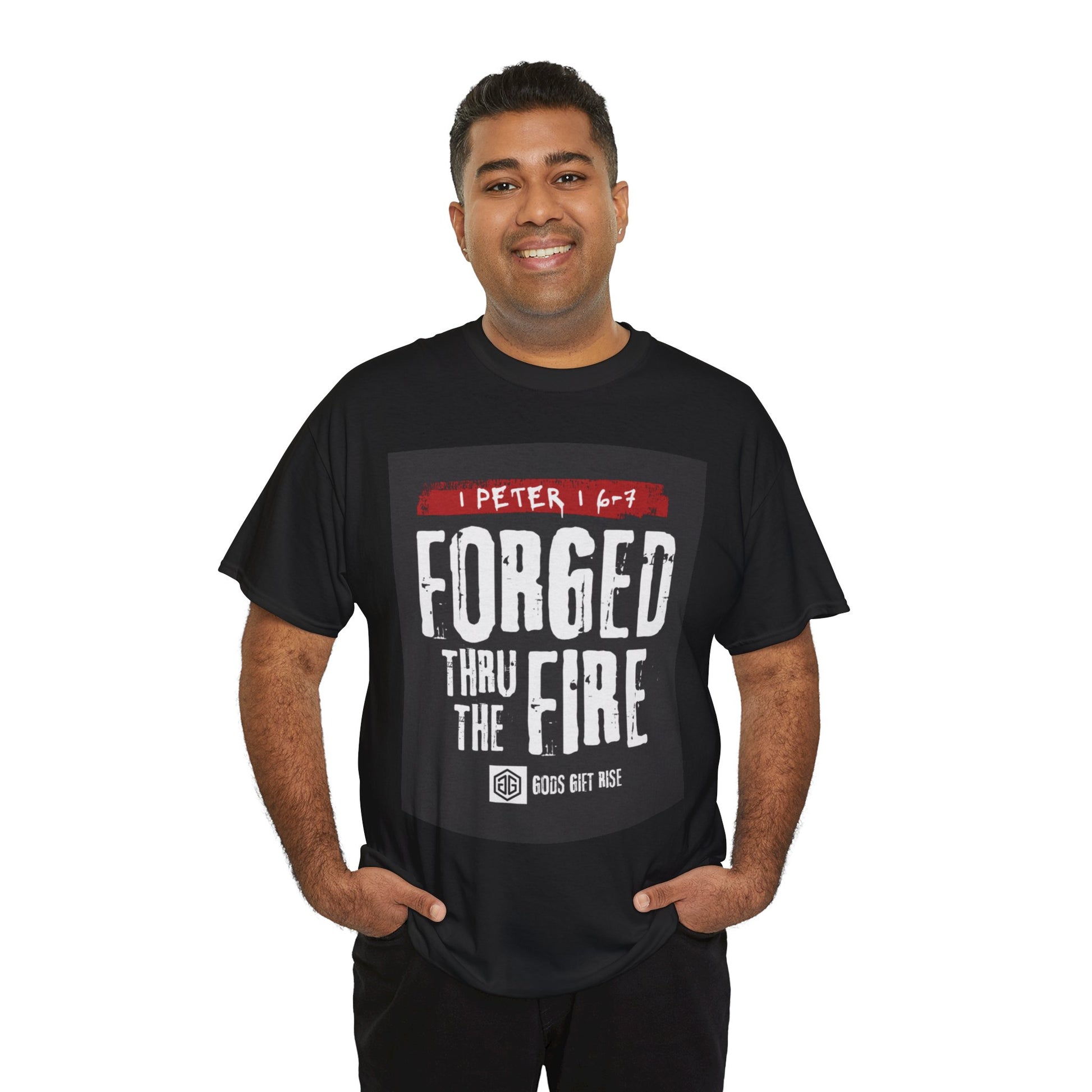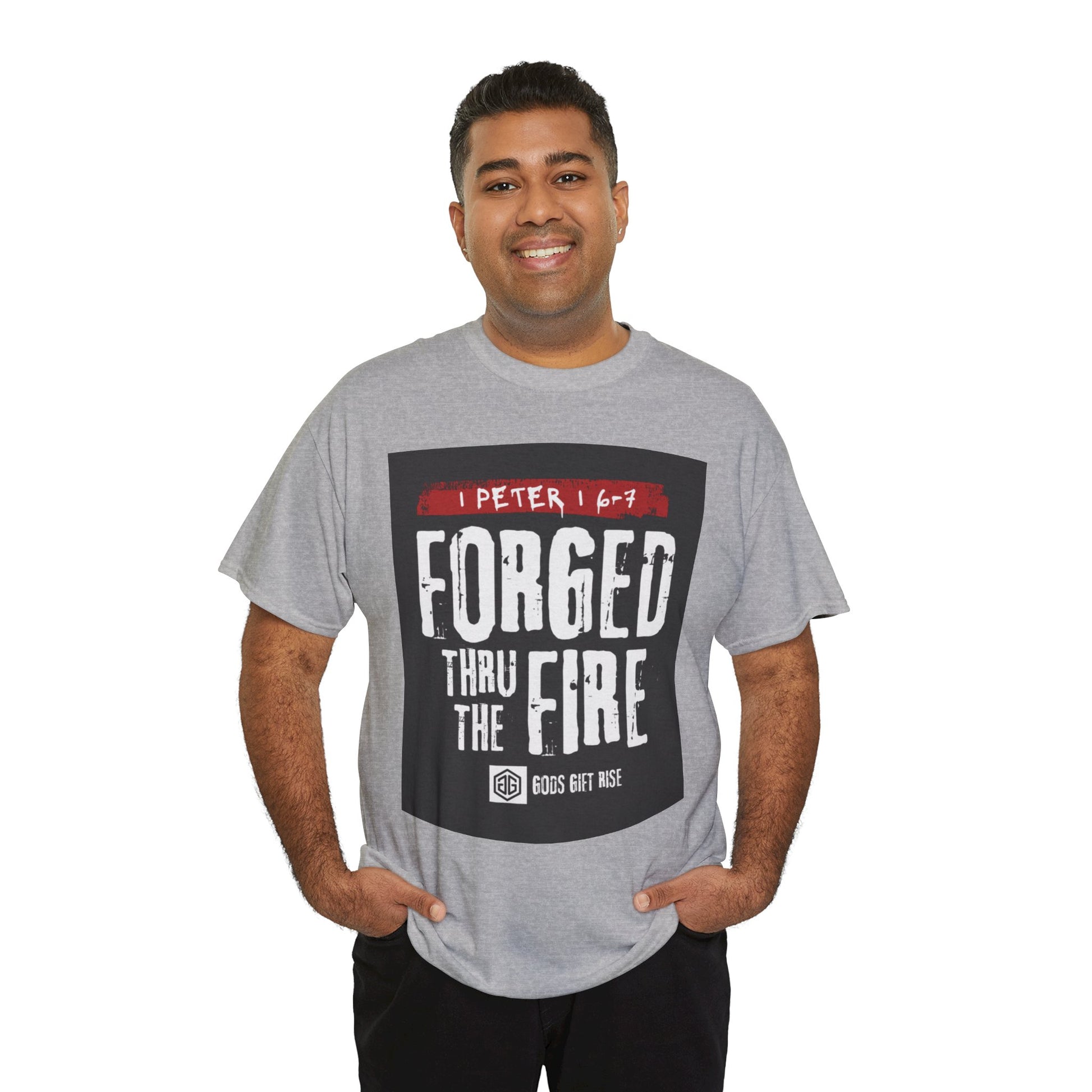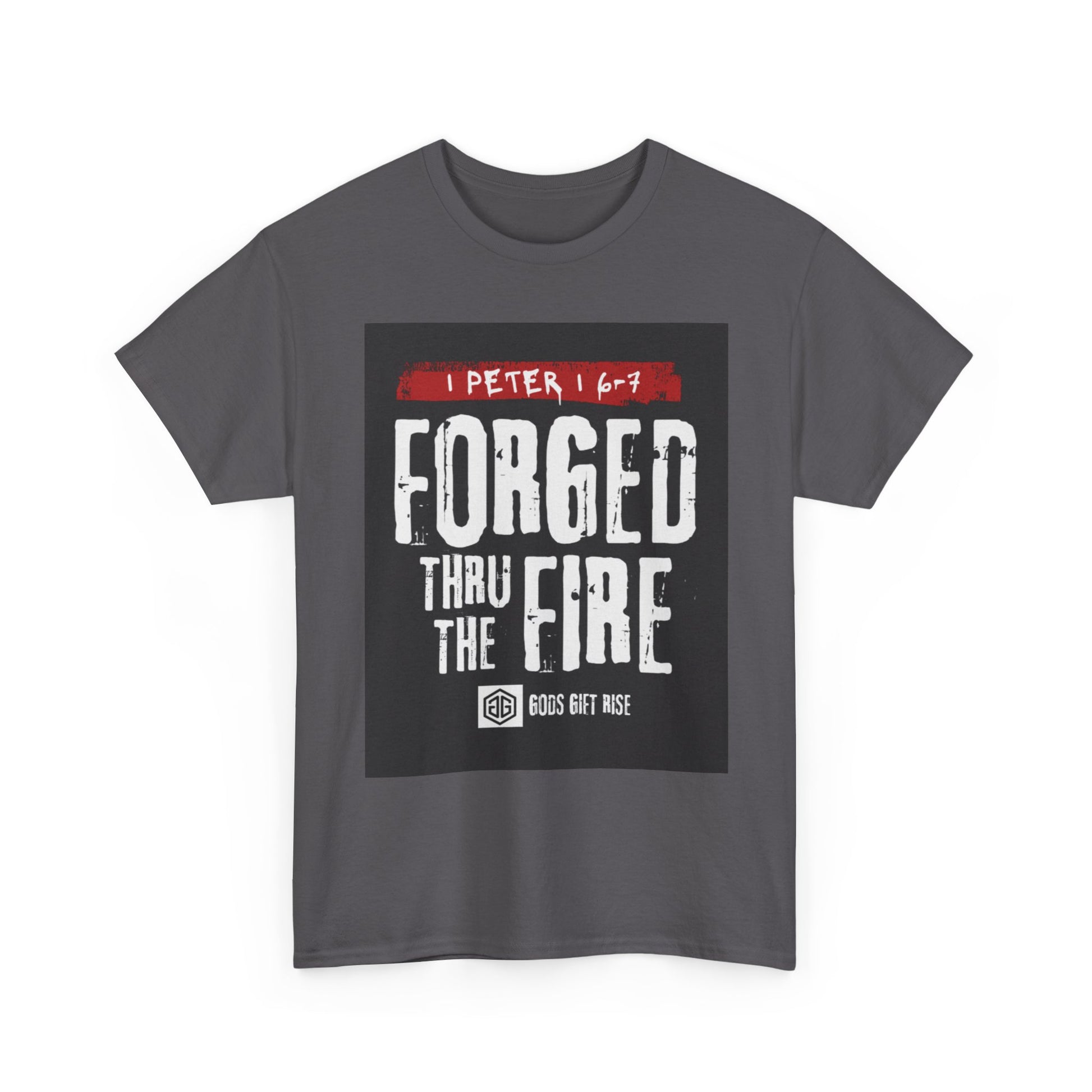 Forged Thru the Fire Tee — 1 Peter 1:6-7 Christian Faith T-Shirt